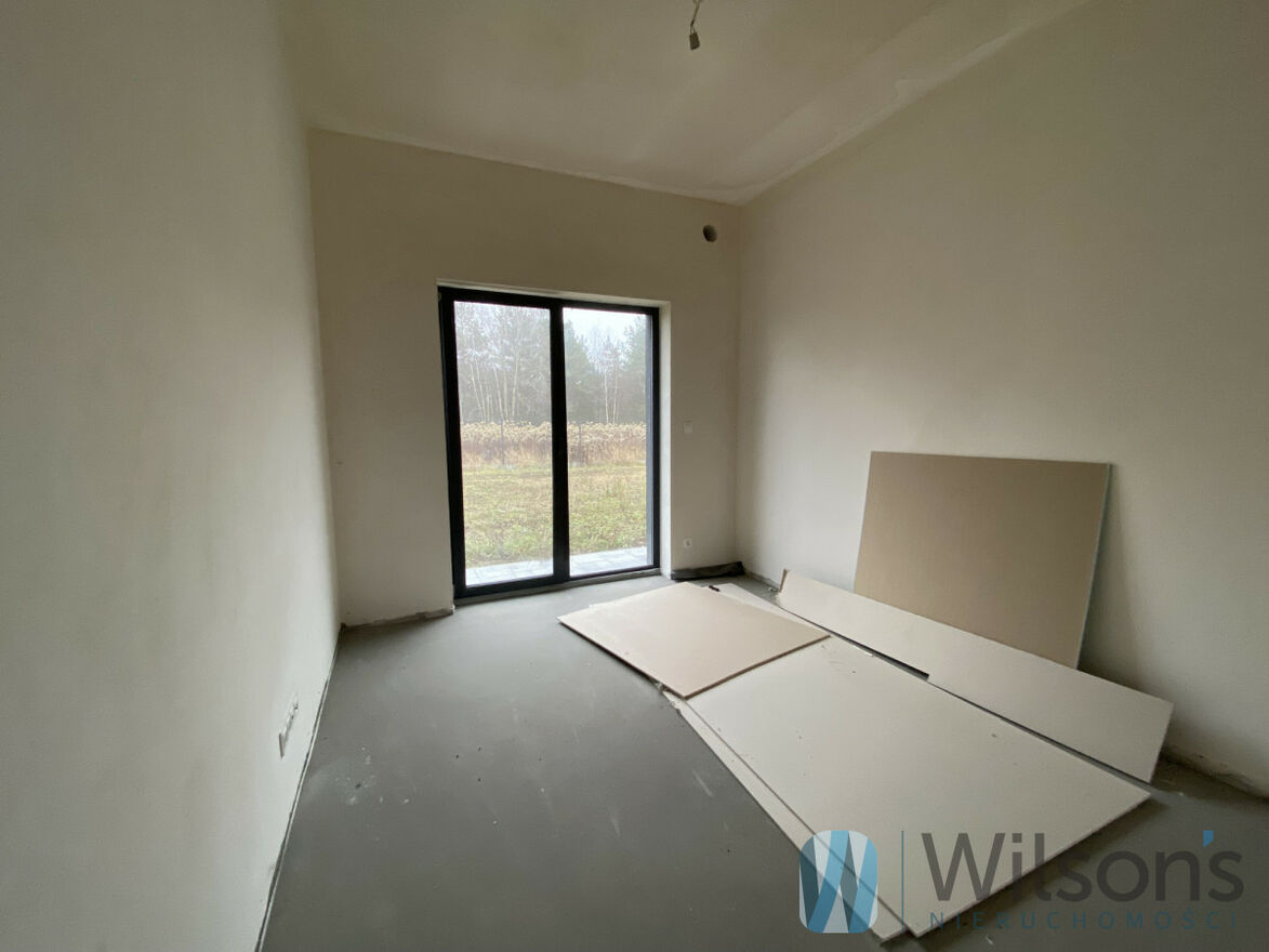 Wyjście na taras z drewnianą pergolą oraz duży ogród 1700 m²